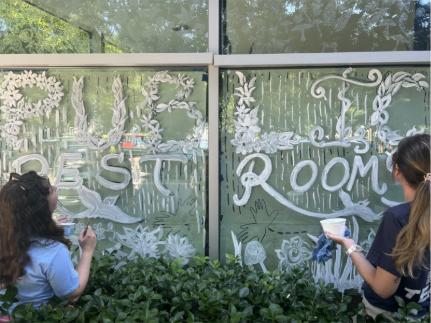 – In preparation for the coming fall migration, BPCA staff are completing work on the new bird-safe glass mural adorning the windows of the public restroom in Teardrop Park. This mural builds on the success of the work done this past spring in implementing bird-safe window paint to protect birds migrating through Battery Park City. The paint effectively disrupts reflections in the glass, which are known to cause often-fatal window collisions, in migratory bird populations.